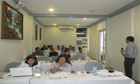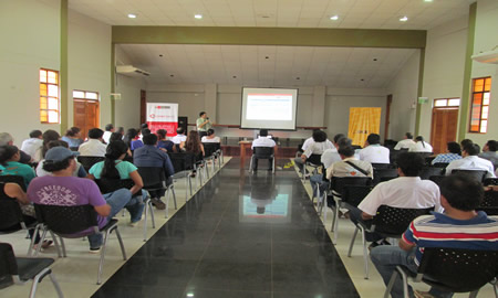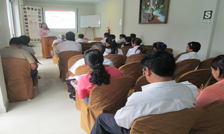 El Especialista en Tesoro y Endeudamiento brinda capacitación sobre Sistema Nacional de Tesorería, en el Auditorio del Proyecto Especial Madre de Dios.