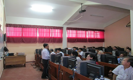 El Implantador MEF brinda capacitación en Sistema Integrado de Administración Financiera SIAF, para Unidades Ejecutoras del Gobierno Regional de Madre de Dios en la Sala de Computo del Colegio Santa Rosa.