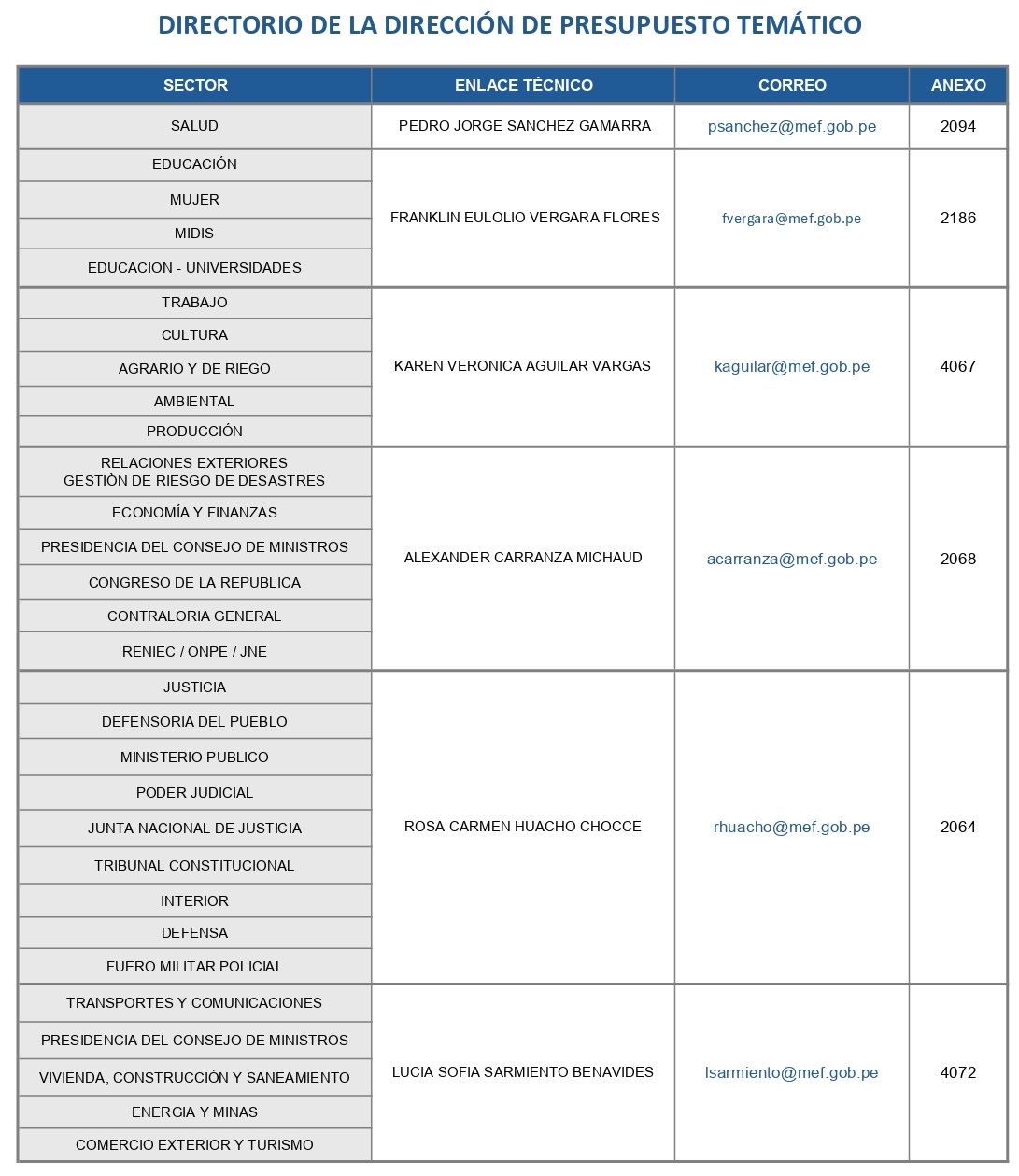 Esta aplicación nos permite conocer los nombres, teléfonos y correos electrónicos de los sectoristas y residentes de cada unidad ejecutora.