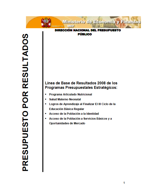 Línea de base de resultados 2008 de los programas presupuestales estratégicos |