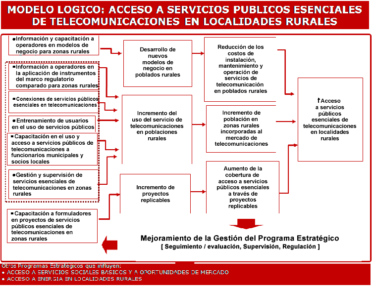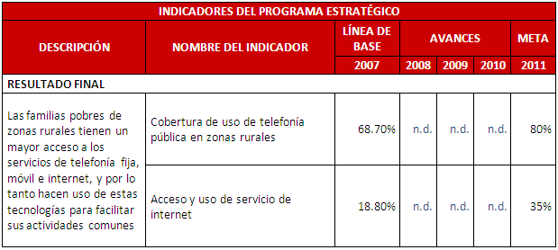 Orientado a conseguir resultados vinculados a facilitar el acceso a los servicios de telecomunicaciones de las familias pobres en zonas rurales. Actualmente estos bienes y servicios son entregados por el Ministerio de Transportes y Comunicaciones, a través de Fondo de Inversión en Telecomunicaciones (FITEL). El año 2010 se ha considerado conveniente sumar las acciones que viene realizando el Instituto Nacional de Investigación y Capacitación de Telecomunicaciones de la Universidad Nacional de Ingeniería (INICTEL-UNI) con su proyecto de Telecentros Rurales. La rectoría de este programa estratégico se encuentra a cargo del Ministerio de Transporte y Comunicaciones.
