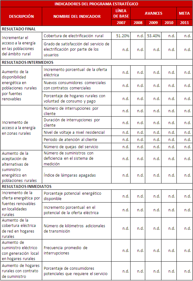 Porcentaje potencial energético disponible Incremento porcentual en el potencial de la oferta eléctrica Número de kilómetros adicionales de transmisión Frecuencia promedio de interrupciones Porcentaje de consumidores potenciales que requiere el servicio