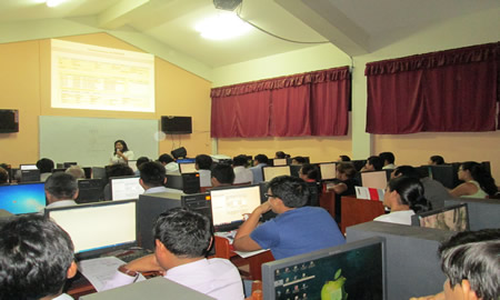 El Implantador MEF brinda capacitación en Sistema Integrado de Administración Financiera SIAF, para Unidades Ejecutoras del Gobierno Regional de Madre de Dios en la Sala de Computo del Colegio Santa Rosa.