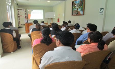 El Especialista en Tesoro y Endeudamiento brinda capacitación sobre Sistema Nacional de Tesorería, en el Auditorio del Proyecto Especial Madre de Dios.