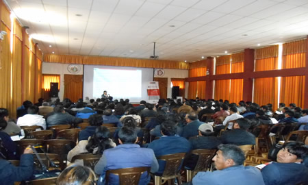 Especialista en Contabilidad Pública de CONECTAMEF Puno, capacita a funcionarios de la Dirección Regional de Educación Puno en temas referidos a Normatividad del Sistema de Contabilidad, Transferencias Financieras y Reevaluación de Edificios y Terrenos, realizado en el Auditorio de la Dirección Regional de Puno.