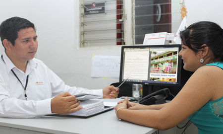 Especialista en Inversión Pública asiste a funcionaria de la Municipalidad Provincial de Bellavista (San Martín) sobre proyectos de inversión.