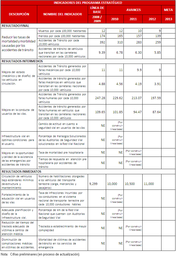 Orientado a conseguir resultados vinculados a reducir las consecuencias sobre las vidas humanas que generan los accidentes de tránsito a nivel nacional. La conducción de este programa estratégico esta a cargo del Ministerio de Transportes y Comunicaciones, en coordinación con el Ministerio de Salud, la Policía Nacional del Perú, entre otros.