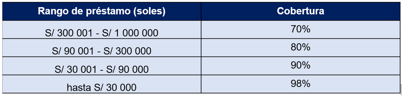 • Créditos desde S/ 300 001 hasta S/ 1 millón tendrán una cobertura del 70%.