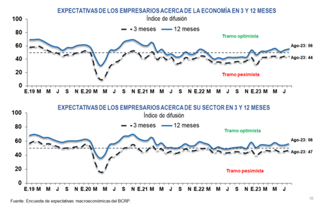 “El MEF prevé una recuperación en el tercer y cuarto trimestre. La economía presenta señales de mejora hacia adelante. El indicador de confianza para invertir de Apoyo Consultoría está en 17 puntos, el nivel más alto desde marzo de 2019; lo mismo sucede con las expectativas de la economía a 12 meses que publica el Banco Central de Reserva (nivel más alto de los últimos años)”, destacó el ministro Contreras, enfatizando que esto es muy importante porque se va a materializar en inversión.