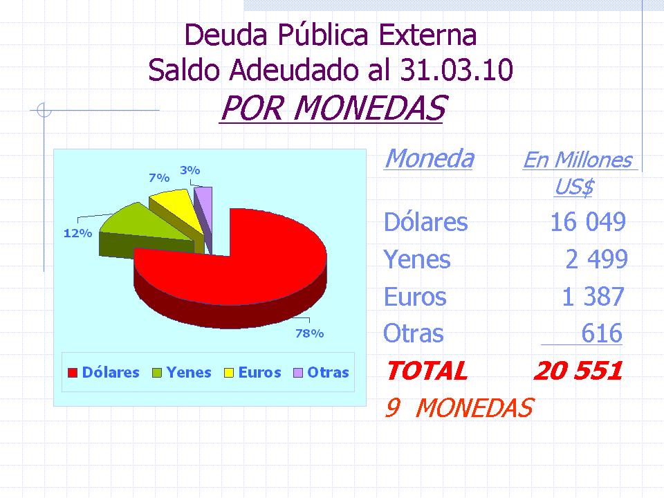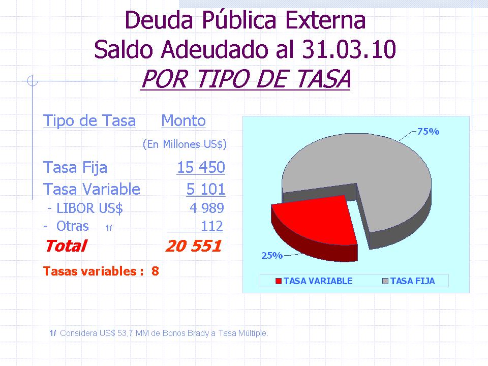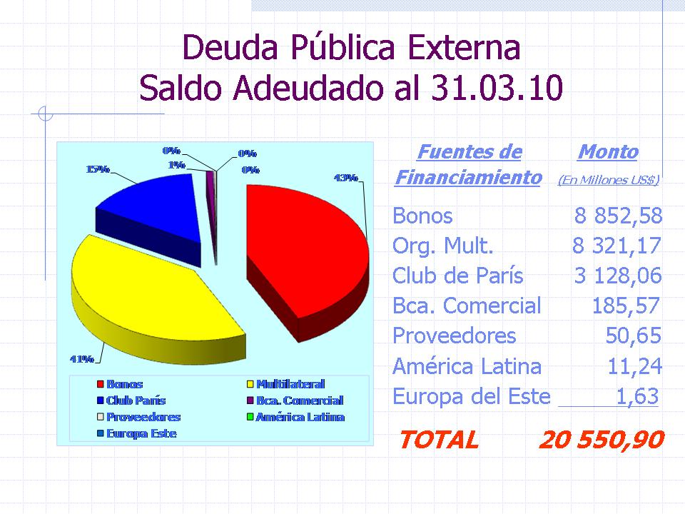 Deuda Externa: Al 31 de Marzo de 2010
