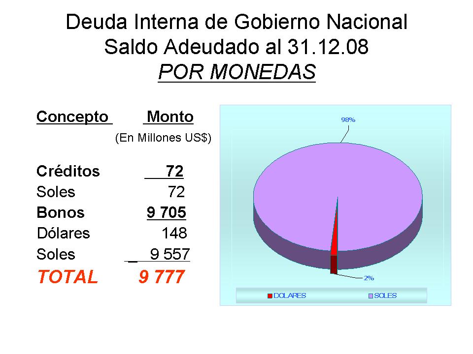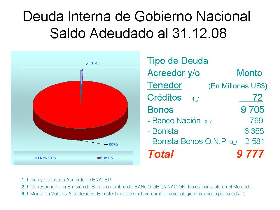 Deuda Interna: Al 31 de Diciembre de 2008