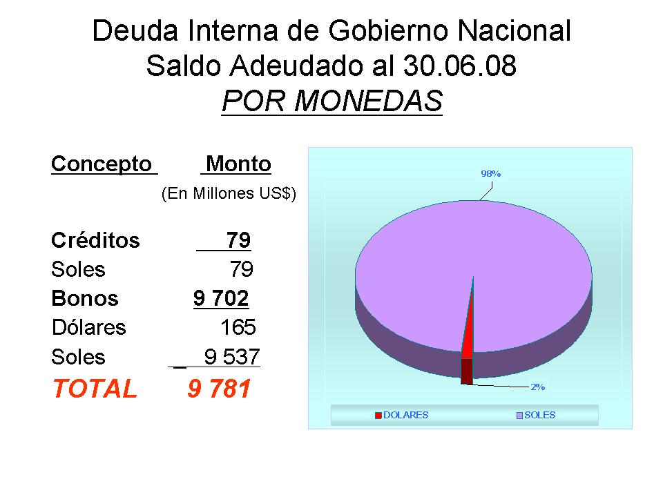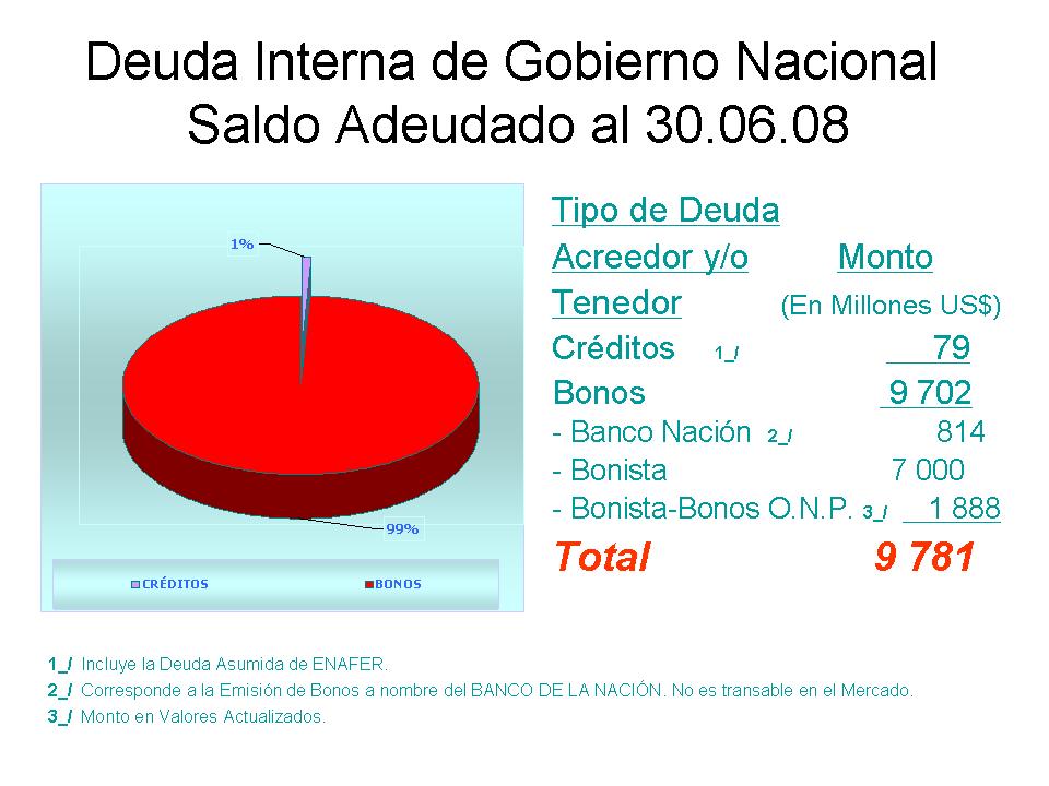 Deuda Interna: Al 30 de Junio de 2008