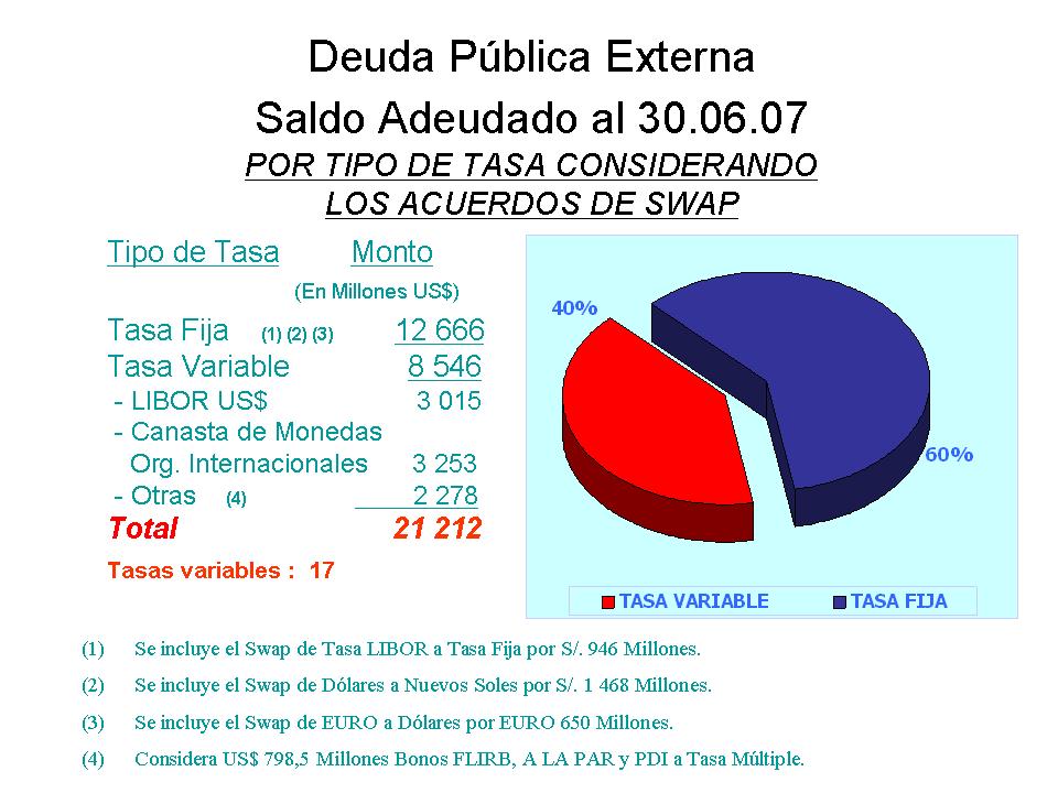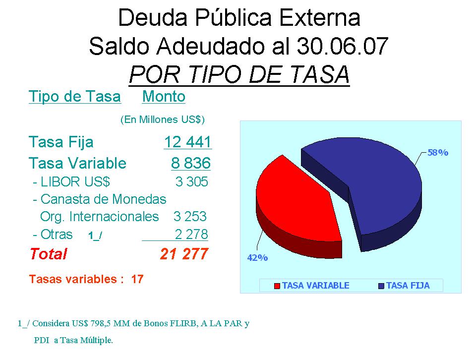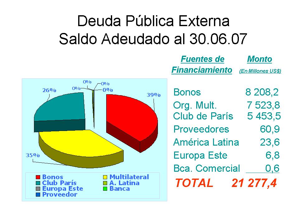 Deuda Externa: Al 30 de Junio de 2007