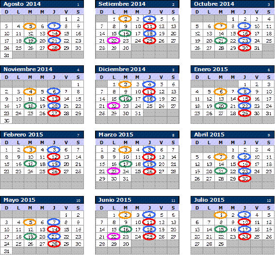 | Primer martes de cada mes: Subasta de letras por un monto referencial máximo de S/. 20 millones para los plazos de referencia de 3 meses y 9 meses. | |