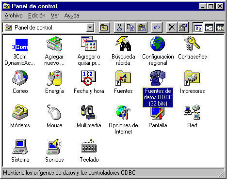 Hacer doble click en Fuentes de Datos ODBC (32 bits), y se cargará el Administrador de orígenes de datos ODBC.