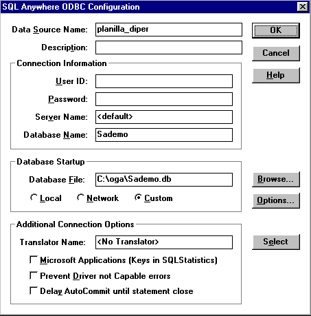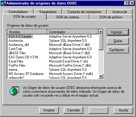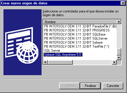Hacer click en Agregar... y seleccionar Sybase SQL Anywhere 5.0