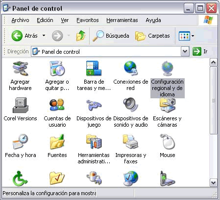 Ubiquemos el icono de <Configuración regional y de idioma>