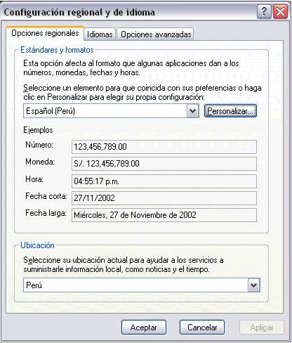 Configuremos la Pc en el cual el SISPER será instalado,en la <Configuración regional> tomemos en cuenta que el Sistema de Planilla tomará los datos de la configuración numérica(separador de miles, millones y el punto decimal), así como la fecha. Cuando se ha instalado el SISPER debemos de haber configurado el <Path> en el ingresaremos la sentencia necesaria para su correcto funcionamiento.