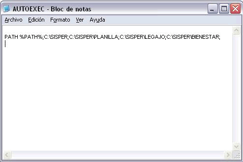 PATH %PATH%;C:SISPER;C:SISPERPLANILLA;C:SISPERLEGAJO;C:SISPERBIENESTAR;