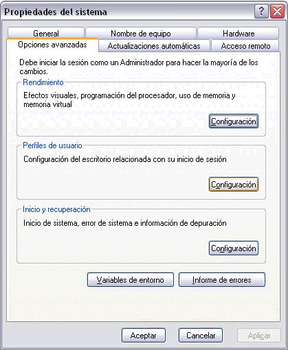 Ingresaremos al tab <Opciones avanzadas>; <Variables de Entorno>