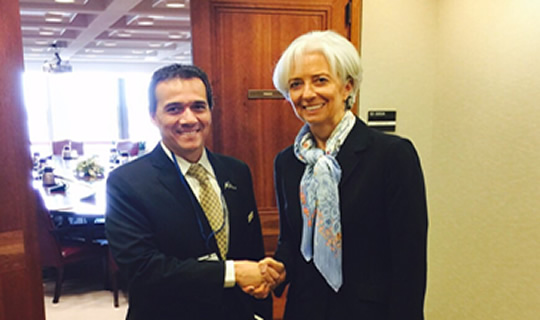 Lima, 15 de abril del 2015.- El Ministro de Economía y Finanzas, Alonso Segura, inició hoy su jornada en la ciudad de Washington DC reuniéndose con la directora general del Fondo Monetario Internacional, Christine Lagarde, y su gabinete.