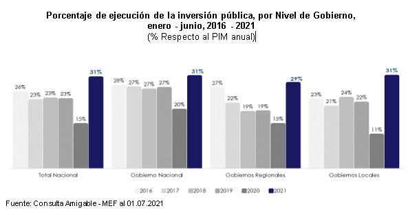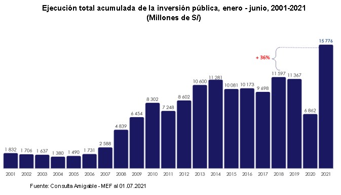 MEF: La ejecución de la inversión pública alcanzó los S/ 15 776 millones al primer semestre manteniendo el récord en todos los meses del 2021 y logrando la ejecución más alta en los últimos 20 años.