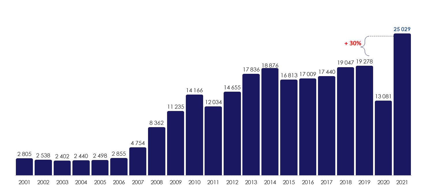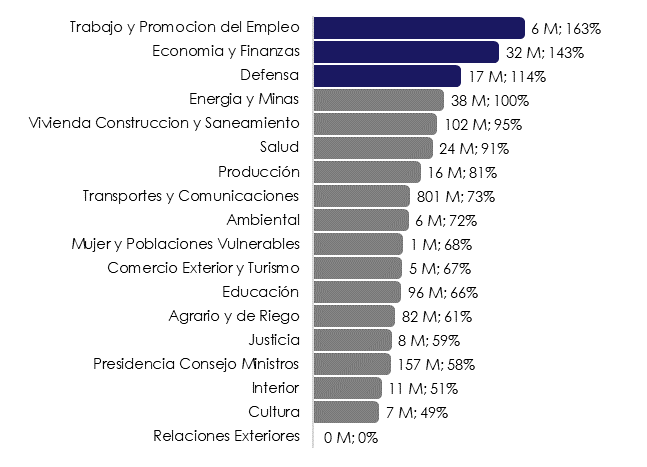 Este desempeño supera en30% a lo ejecutado para el mismo periodo del 2019 (S/ 19 278 millones), año que presentó la mayor ejecución entre los años 2001 al 2020.