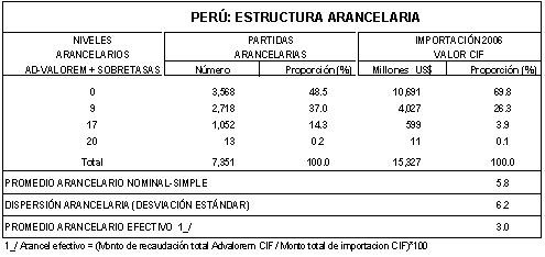 En línea con las reformas y políticas económicas que se vienen dando desde fines del año 2006, destinadas a mejorar la competitividad del país, a generar incrementos sustanciales en la productividad promedio y a dar mayores beneficios a los consumidores, el Ministerio de Economía y Finanzas redujo tasas a diversas partidas arancelarias, como parte de un proceso de desgravación gradual y progresivo. Esta reducción tendrá un impacto positivo sobre la eficiencia en la asignación de recursos, reduciéndose el promedio arancelario de 8,0% a 5,8% y la dispersión de 7,6 a 6,2 puntos porcentuales. Además, se continúa reduciendo el número de niveles arancelarios de cinco (niveles de 0%, 12%, 17%, 20% y 25%) a cuatro (niveles de 0%, 9%, 17% y 20%), observándose que aproximadamente el 70% de las importaciones tienen un arancel de 0%, lo que finalmente redundará en un mayor flujo de inversión.