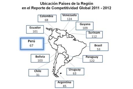 El Perú consolida su posición como uno de los países con mayor perspectiva de crecimiento y desarrollo, al mostrar importantes mejoras en la última edición del Reporte de Competitividad Global (RCG) emitido por el Foro Económico Mundial (WEF por sus siglas en inglés), el cual indica que nuestro país ha mejorado seis posiciones pasando del puesto 73 al 67, lo cual nos coloca como uno de los países de la región que más ha avanzado en este ranking (19 posiciones en los últimos cinco años).