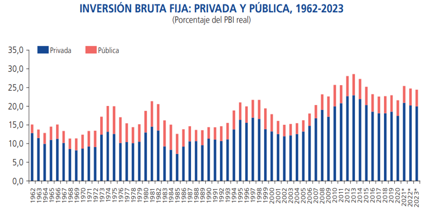 Según el último Reporte de Inflación del BCRP, la inversión bruta fija continuará dinámica en los próximos años, liderado por una mayor inversión privada. La inversión bruta fija, en porcentaje del PBI real, aumentaría 1,5 puntos porcentuales entre 2019 y 2023, ubicándose en 24,4% del PBI.