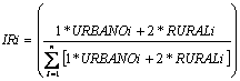 El artículo 146° de la Ley Orgánica de Municipalidades, aprobada mediante Ley N° 27972, establece que las zonas rurales tienen asignación prioritaria y compensatoria de los recursos del FONCOMUN. En el índice de ruralidad se pondera (multiplica) por 2 (dos) a la población rural y por 1 (uno) a la población urbana. Dicho índice se calcula de la siguiente manera: