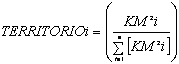 KM2j = extensión territorial de del distrito i (en kilómetros cuadrados – KM2).