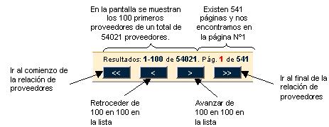 Por ejemplo si queremos ver los siguientes 100 proveedores (del 101 al 200) bastará con dar clic al botón . En la pantalla Nº3 se observan los resultados.