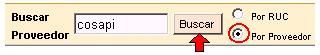 Por ejemplo, si queremos obtener la información de la empresa Cosapi S.A, se deberá seleccionar la opción "Por Proveedor", escribir el nombre completo o parte del nombre de la empresa y finalmente dar clic a "Buscar"