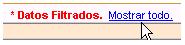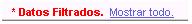 Este texto permitirá recordar al usuario si se han filtrado datos (si se han buscado datos específicos). Si el texto "Datos Filtrados" aparece en rojo es porque se está mostrando solo información requerida por el usuario. Al mismo tiempo aparecerá el texto "Mostrar todo" en azul claro, si pasamos el mouse sobre este texto veremos que el color azul se resaltará, activando la opción para mostrar nuevamente toda la información sin considerar el criterio de búsqueda realizado (Cosapi).