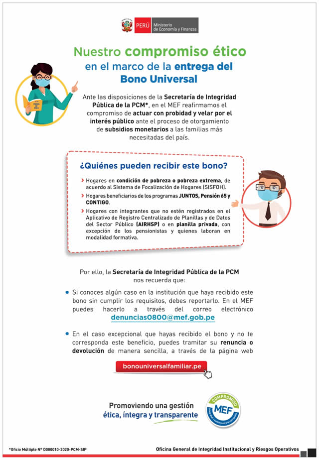 Nuestro compromiso ético ante la entrega del Bono Universal