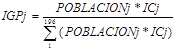| IGPj = indicador geográfico provincial de la provincia j | ||||||||||||