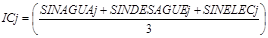 | SINAGUAj = porcentaje de personas que no cuentan con el servicio de agua en la provincia j | ||||||||||||