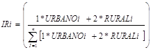 | URBANOi = población urbana del distrito i | ||||||||||||